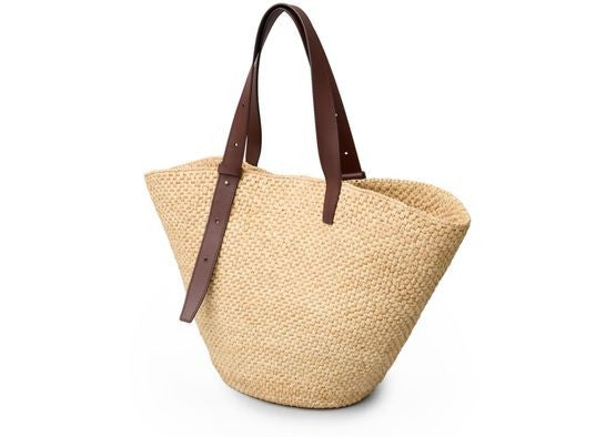 説明 : Basket, open weave, double handles, adjustable strap, single compartment, large interior compartment.
