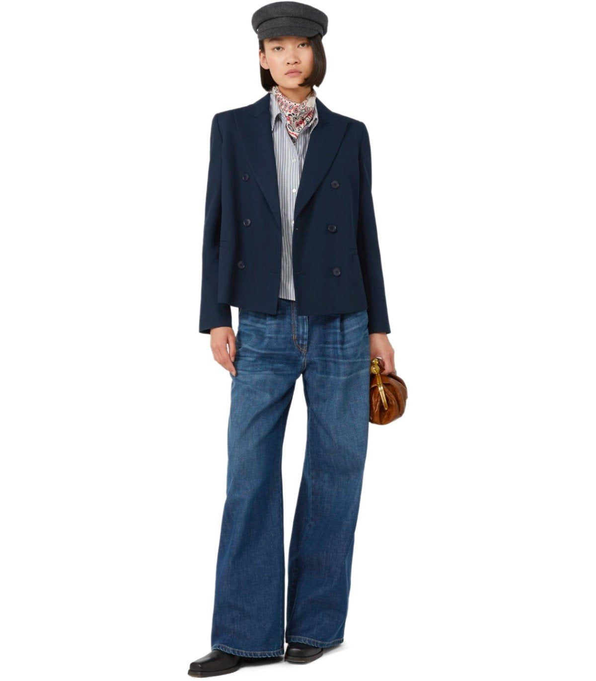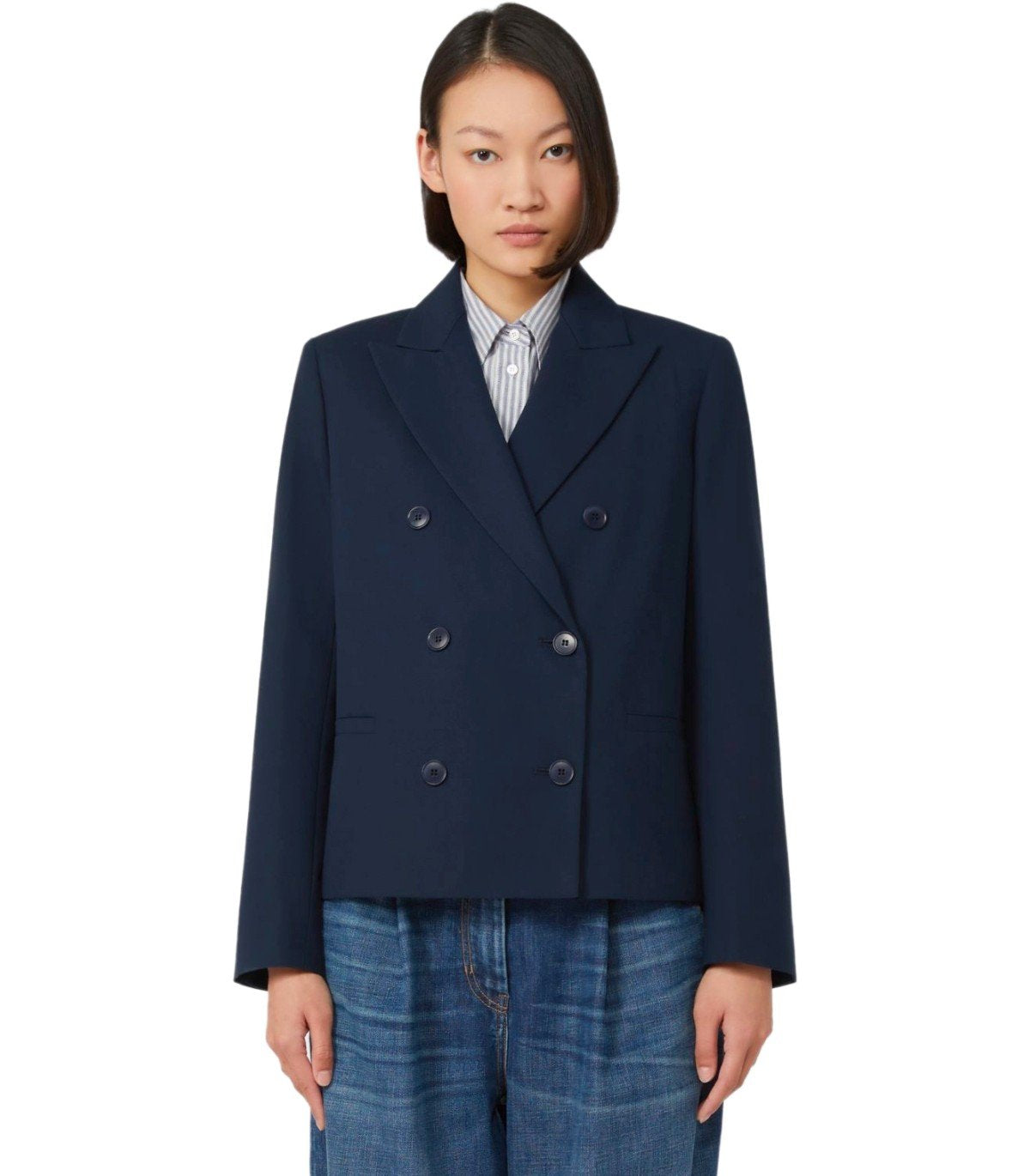 マックスマラウィークエンドタペートブルーダブル胸肉ブレザー
