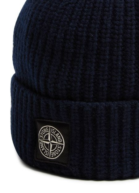 説明 : Beanies, logo at the front, turn-up brim, round crown, visible stitching.