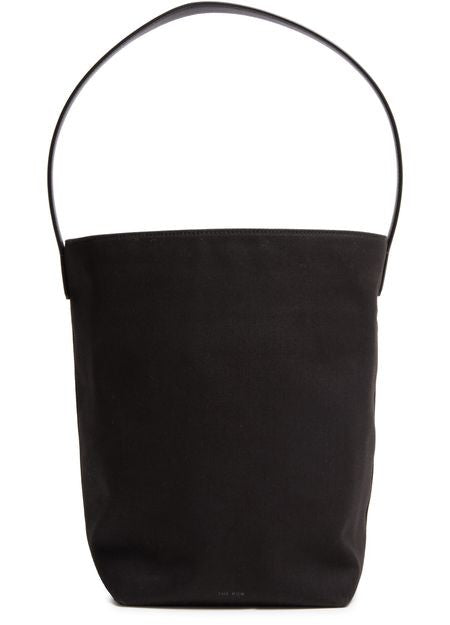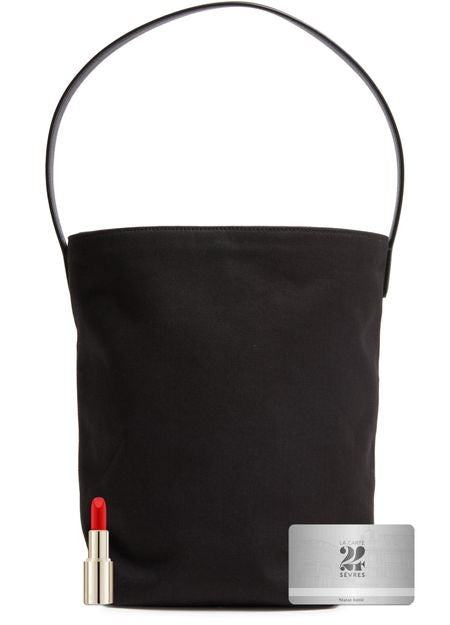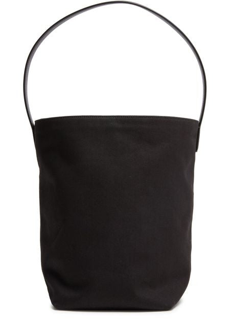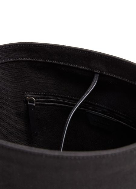 説明 : Bucket bag, shopper / tote bag, single handle, leather handle, zippered interior pocket, visible topstitching.