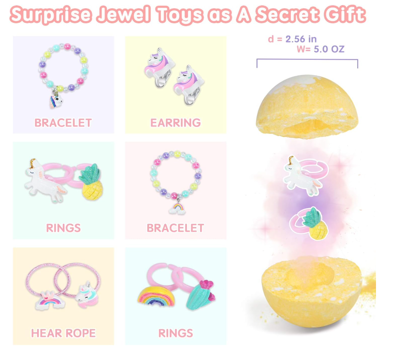 2023 Unicorn Bath Bombs for Kids with Surprise Inside, XXL 5.0 OZ, 6 Pack Handmade Organic Bath Bombs with Jewelry Inside, Girls Gift for Valentine, Birthday, Christmas