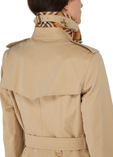 説明 : 七分丈トレンチコート, ノッチドカラー, フックで調節可能なカラー, ショルダーストラップ, ダブルボタン開閉 | ベルトループ, サイドポケット.