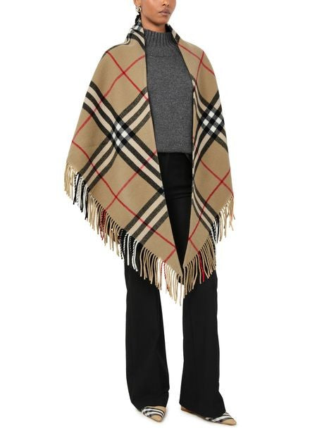 説明 : 市松模様, フリンジのディテール, ゆったりとしたオーバーサイズスタイル, フリンジエッジ.