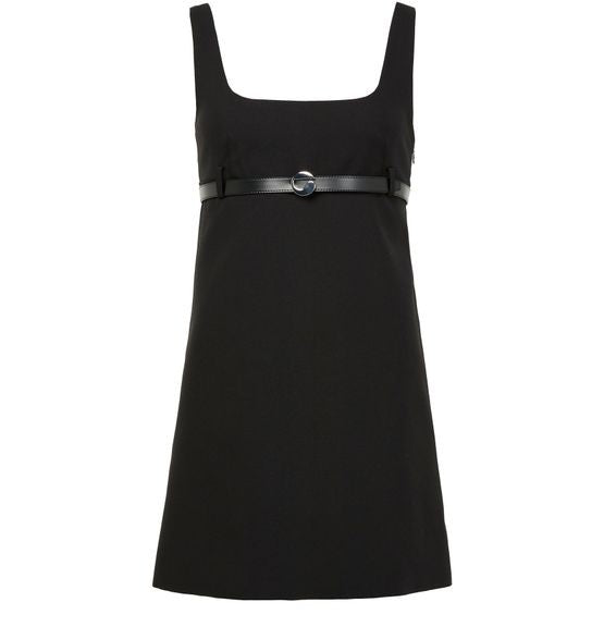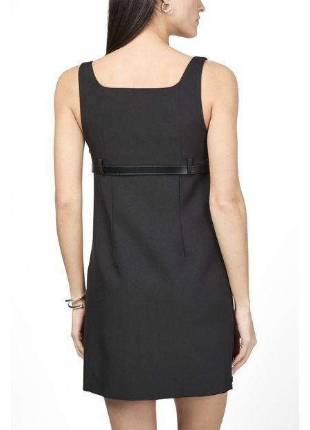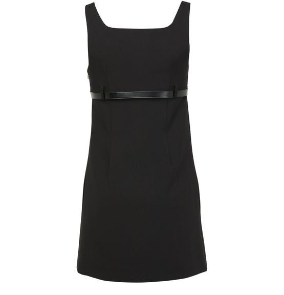 説明 : ベルトループ, 目に見えるステッチ, ミニドレス, ノースリーブ, aラインカット, レクタングルネック, ベルト付きウエスト.