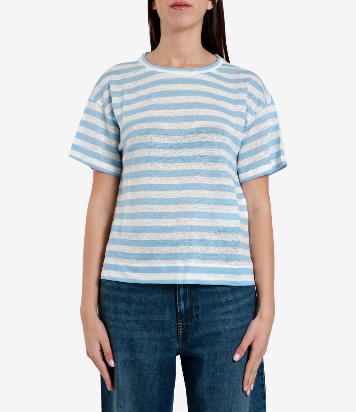 マックスマラウィークエンドシャツホワイト+ライトブルー