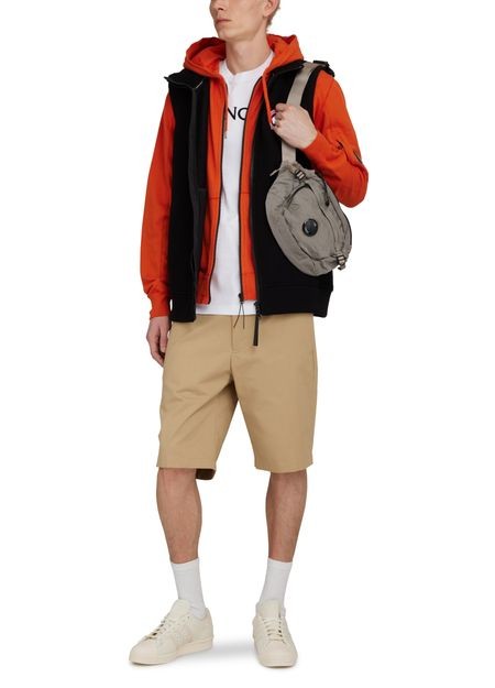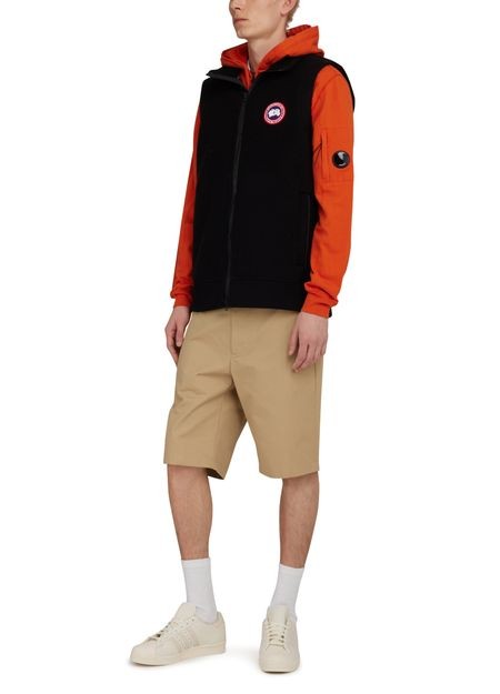 説明 : あたたかな素材, 一部にリサイクル素材を使用, ストレートフィット, ハイカラー, ノースリーブ, ファスナー開閉, ロゴアップリケ, サイドポケット.