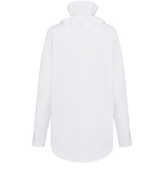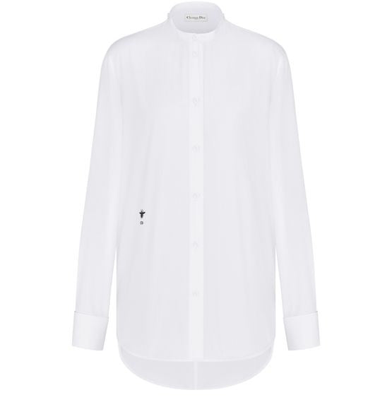 説明 : Embroidered hallmark bee and CD signature, removable ruched collar, front button closure, buttoned cuffs, christian Dior Paris mother-of-pearl buttons, unlined.