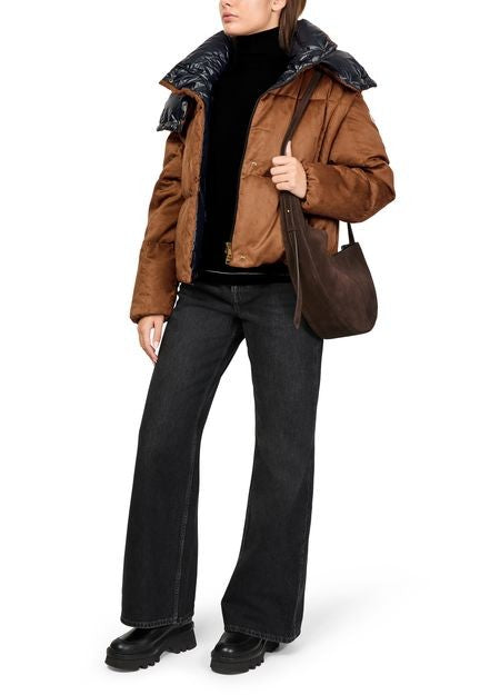 説明 : Crop, hood, long-sleeved, side pockets, button fastening, padded texture, embellished buttons.