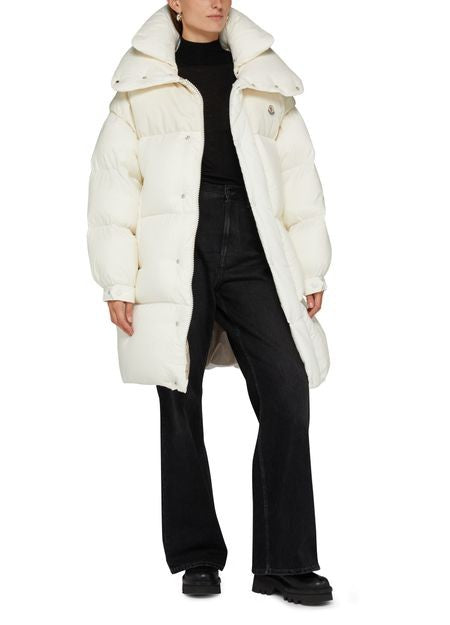 説明 : コンシールファスナーとスナップボタン, 膝丈, サイドウェルトポケット, ロングスリーブ, フード, ダウン.
