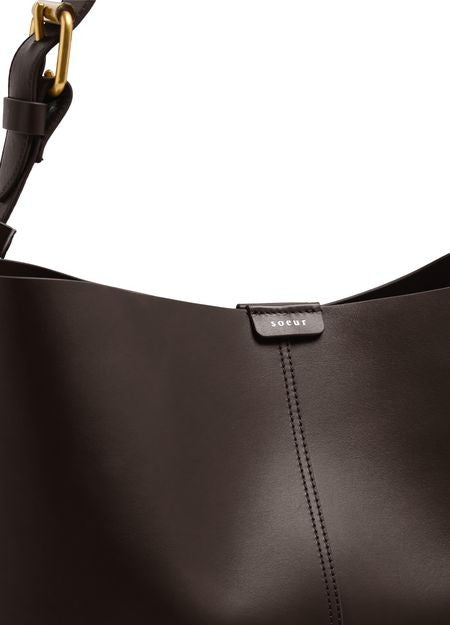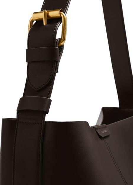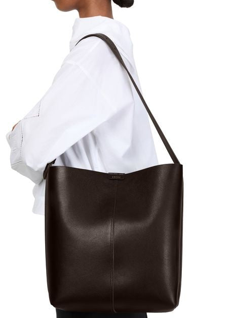 説明 : Shopper / tote bag, single handle, leather handle, front logo, smooth leather, snap-button fastening, visible topstitching.
