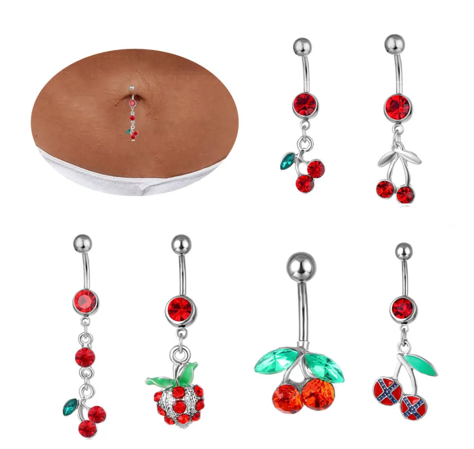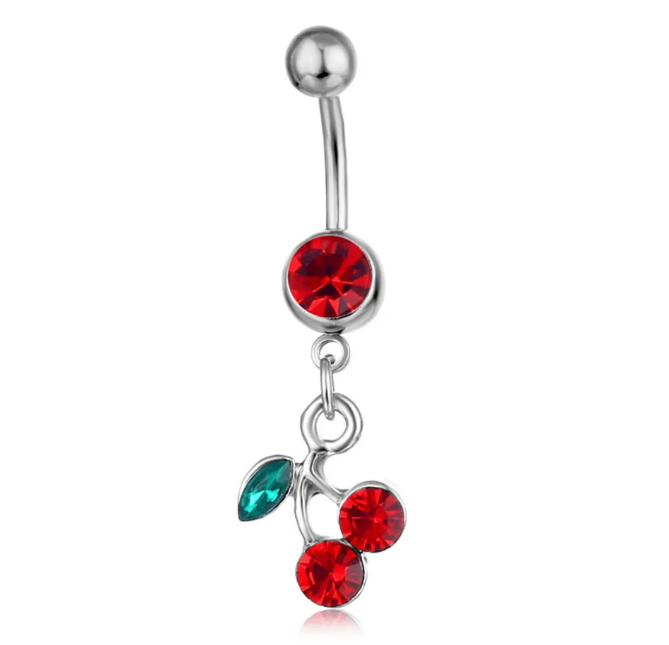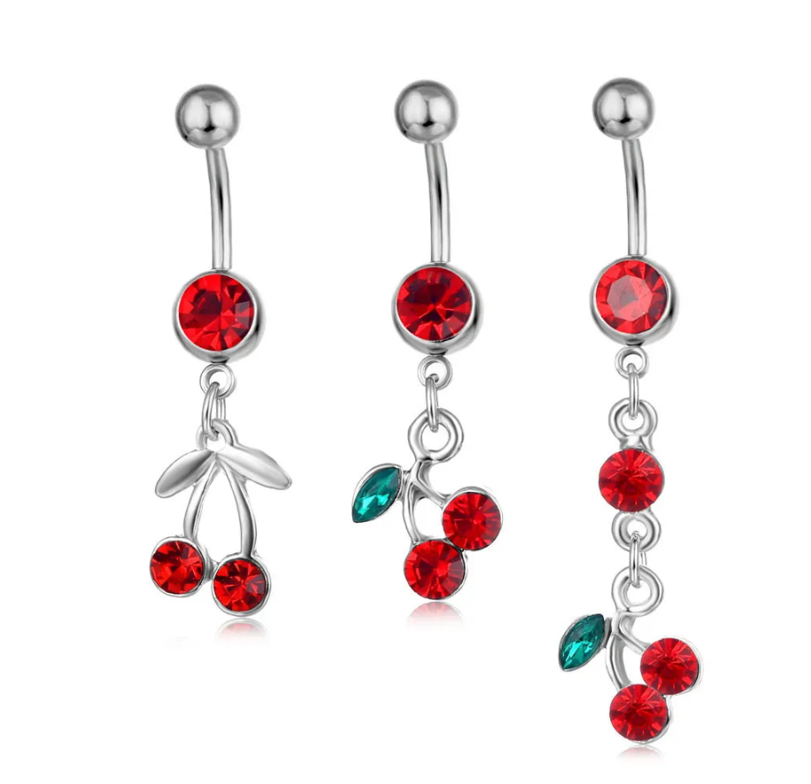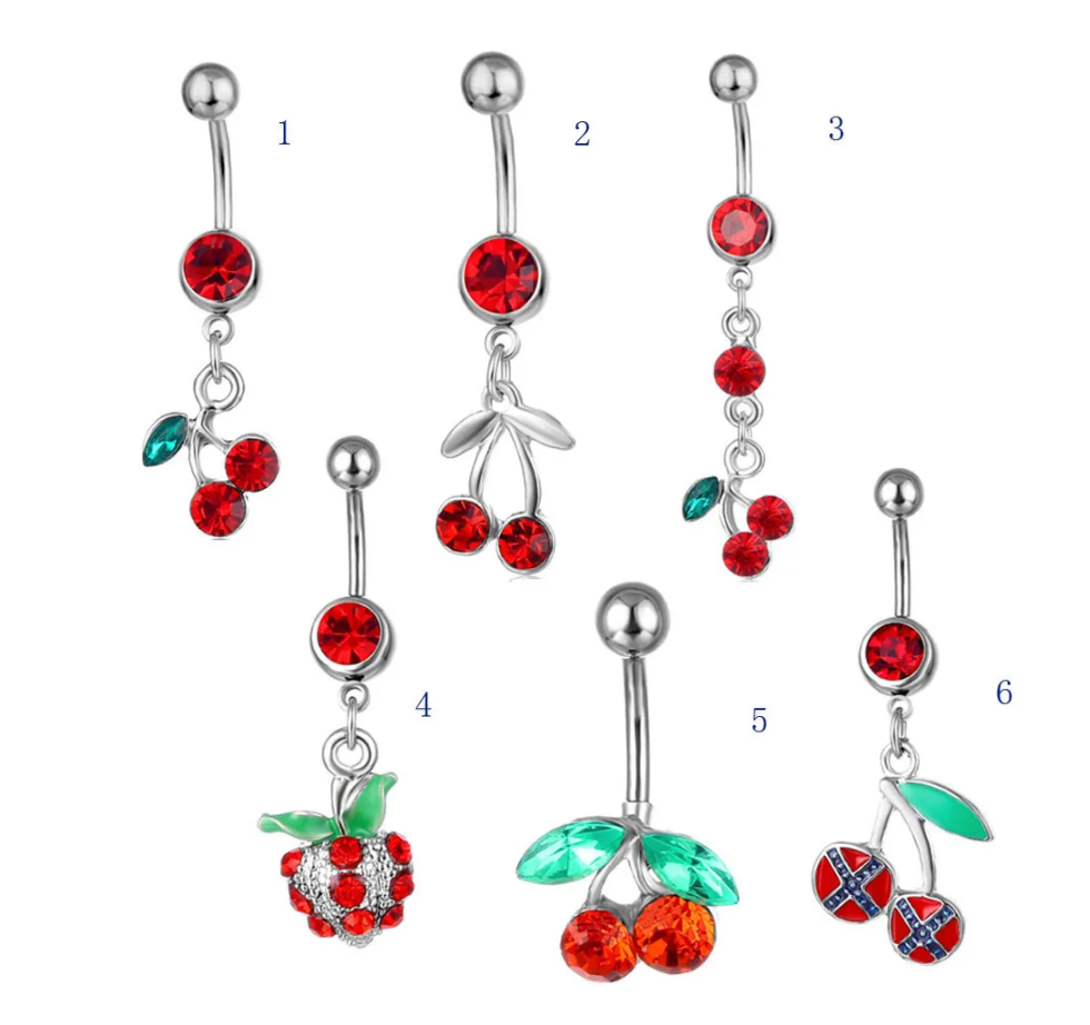 チェリーペンダントベリーボタンリングドロップボディベリーピアスフルーツベリーボタンへそリングボタンリング
