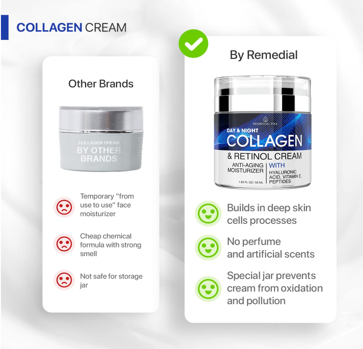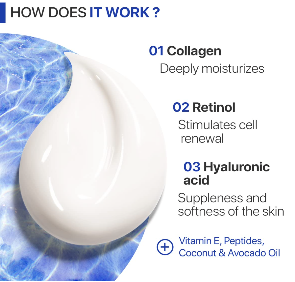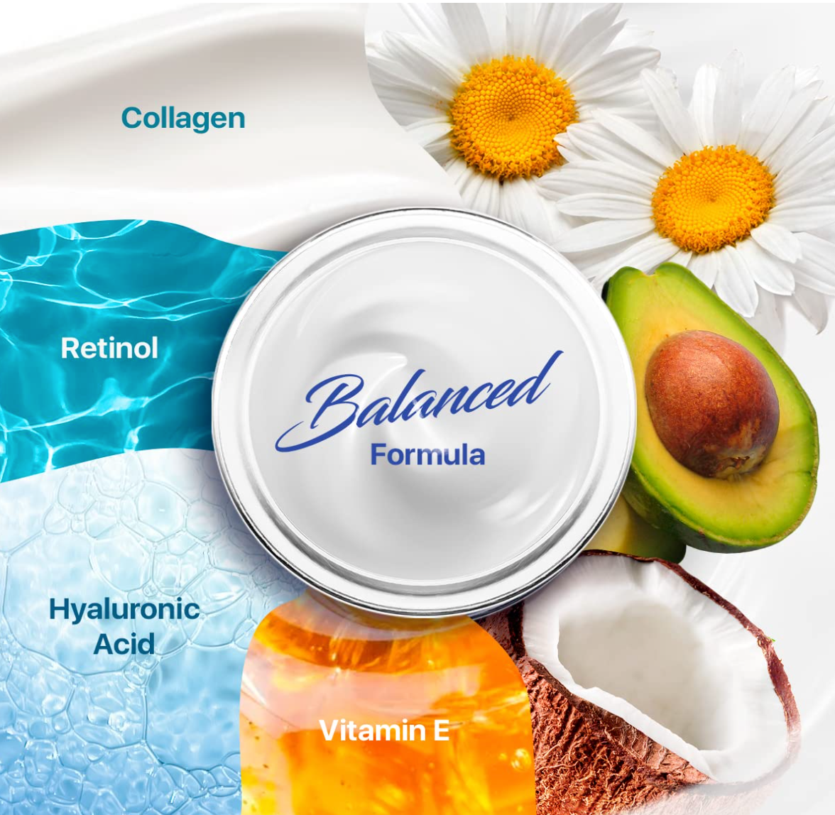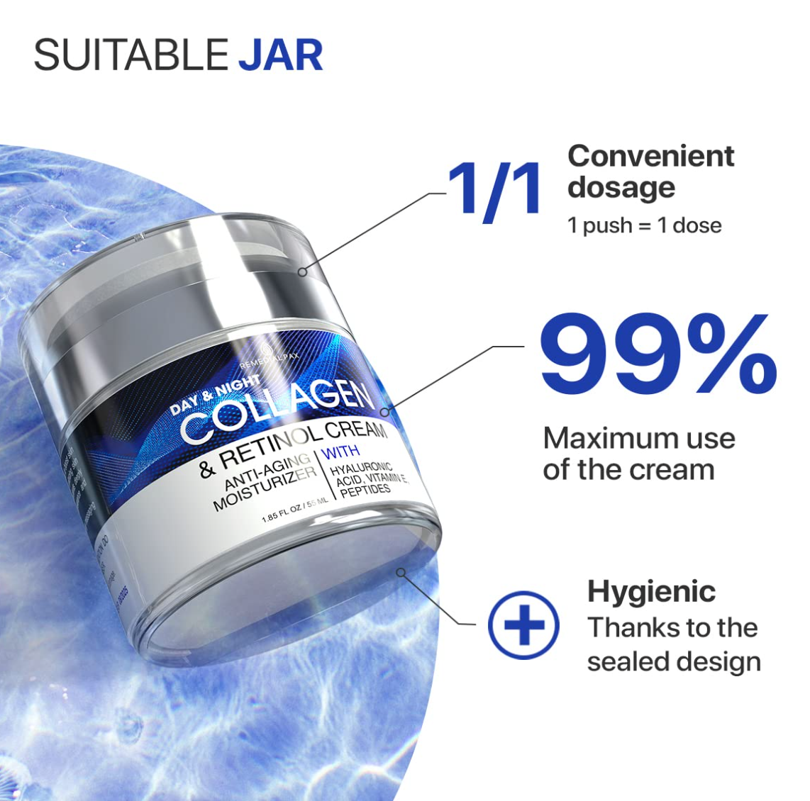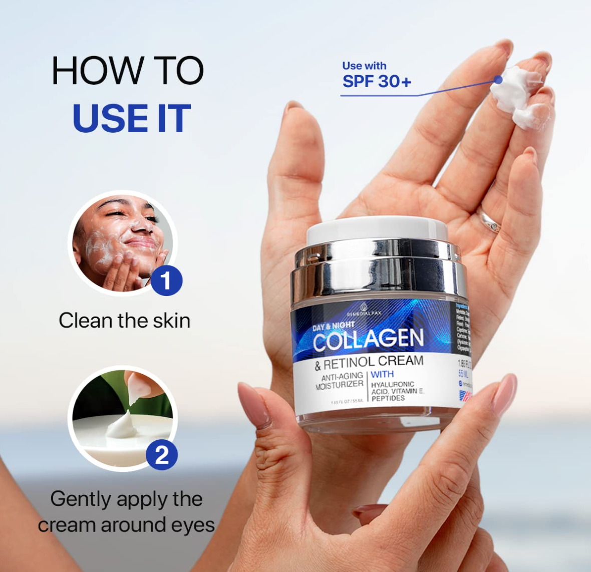 Collagen Cream for Face with Retinol and Hyaluronic Acid, Day and Night Anti Aging Skincare Facial Moisturizer, Hydrating Face Lotion, Moisturizing Cream to Reduce Wrinkles for Women Men, Made in USA