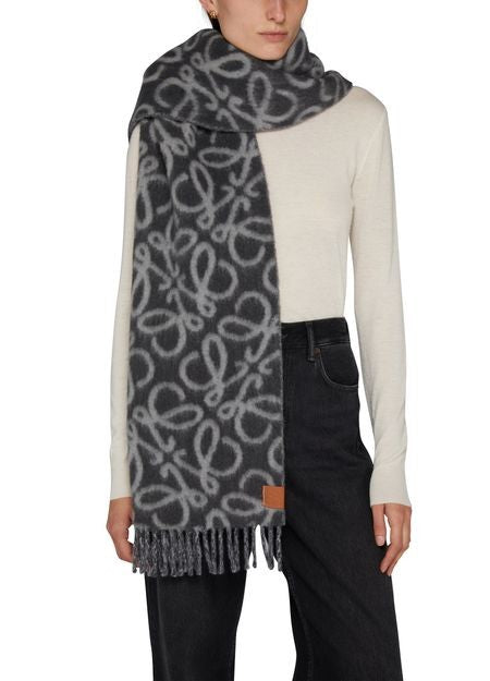 説明 : あたたかな素材, フリンジエッジ, ゆったりとしたオーバーサイズスタイル, シグネチャーロゴプリント.