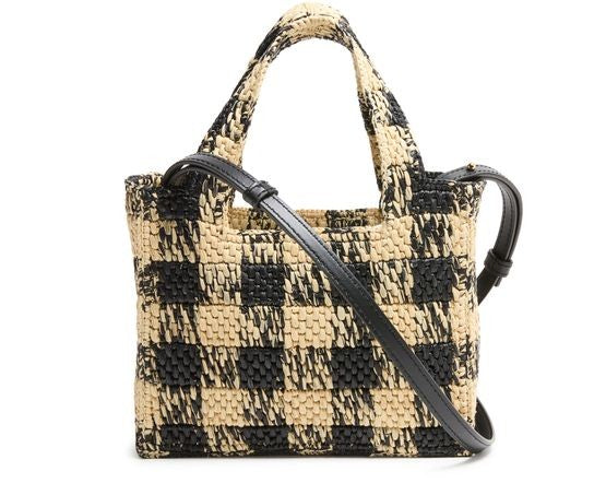 説明 : チェック柄, 飾りステッチ, 刺繍ロゴ, 前面ロゴ, シングルコンパートメント, 手持ち, 肩掛け, 調節可能なストラップ, ミニバッグ, ナローストラップ.
