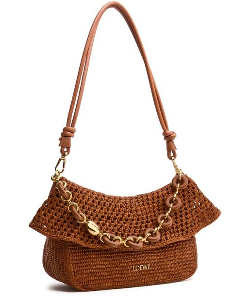 LOEWE Ola Hobo medium bag in raffia and calfskin