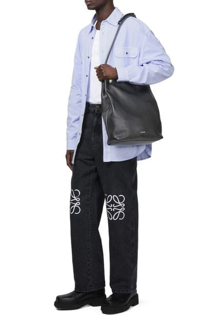 説明 : シングルコンパートメント, シルバーフィニッシュ, シングルハンドル, 前面ロゴ, 銀文字ロゴ, ファスナー付き内ポケット, 飾りステッチ, 肩掛け, ナローストラップ.