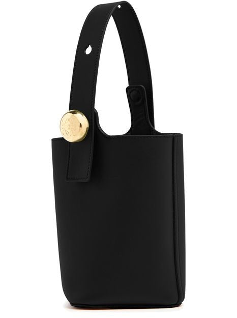 説明 : シングルコンパートメント, サイドロゴ, 刻印ロゴ, ゴールド仕上げ, ワイドストラップ, シングルハンドル, 手持ち, 肩掛け, 斜め掛け, 調節可能なストラップ.