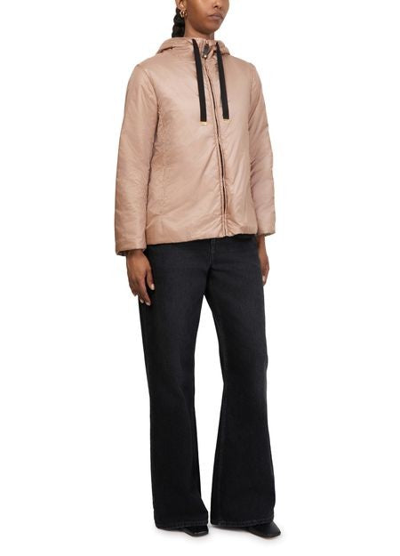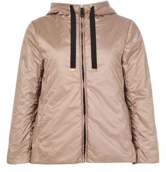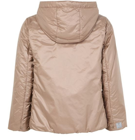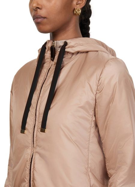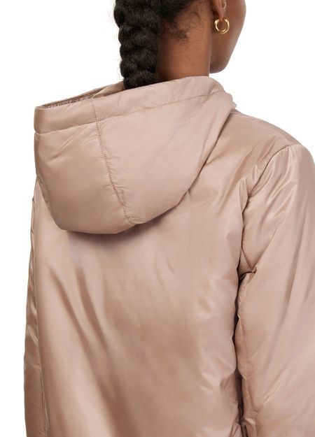 説明 : Short, hood, long-sleeved, zipper closure, padded texture.