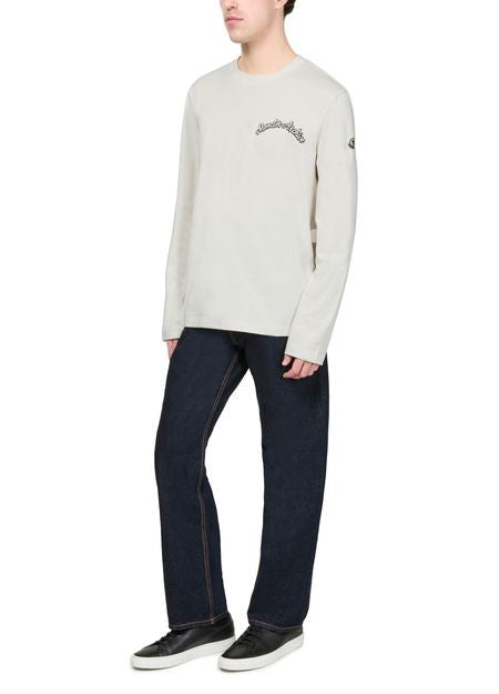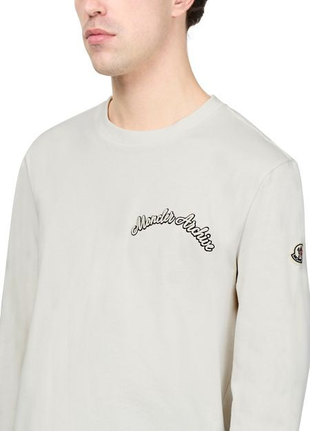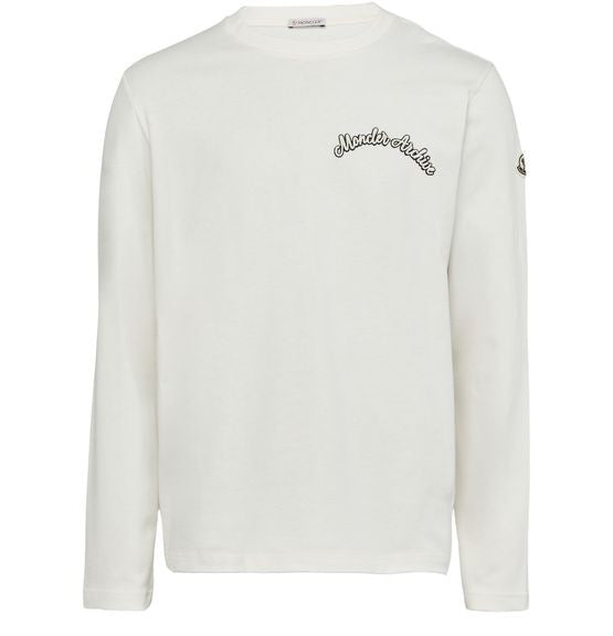 説明 : アップリケロゴ, サイドロゴ, 胸元ロゴ, 目に見えるステッチ, ロングスリーブ, tシャツ, クルーネック, カフスボタン付きスリーブ, カフス.