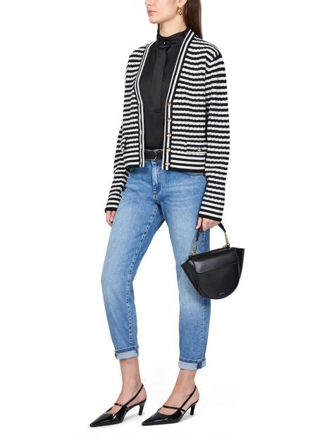 説明 : フロントボタン留め, ショート, ロングスリーブ, ボーダー柄.