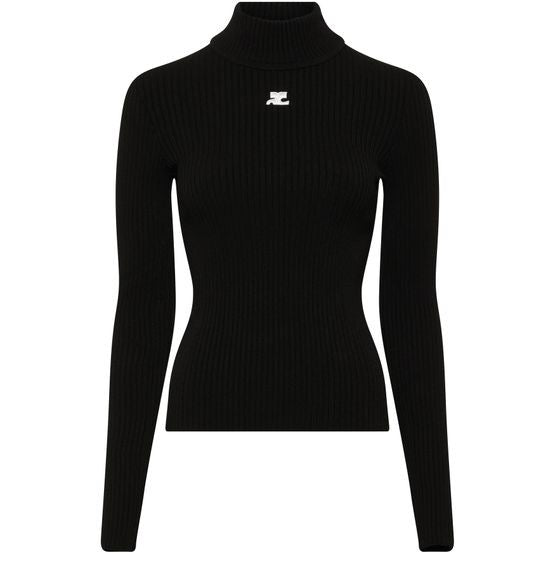 説明 : ニットプルオーバー, ロングスリーブ, ハイカラー, リブエッジ, フロントにロゴ, スリムフィット.