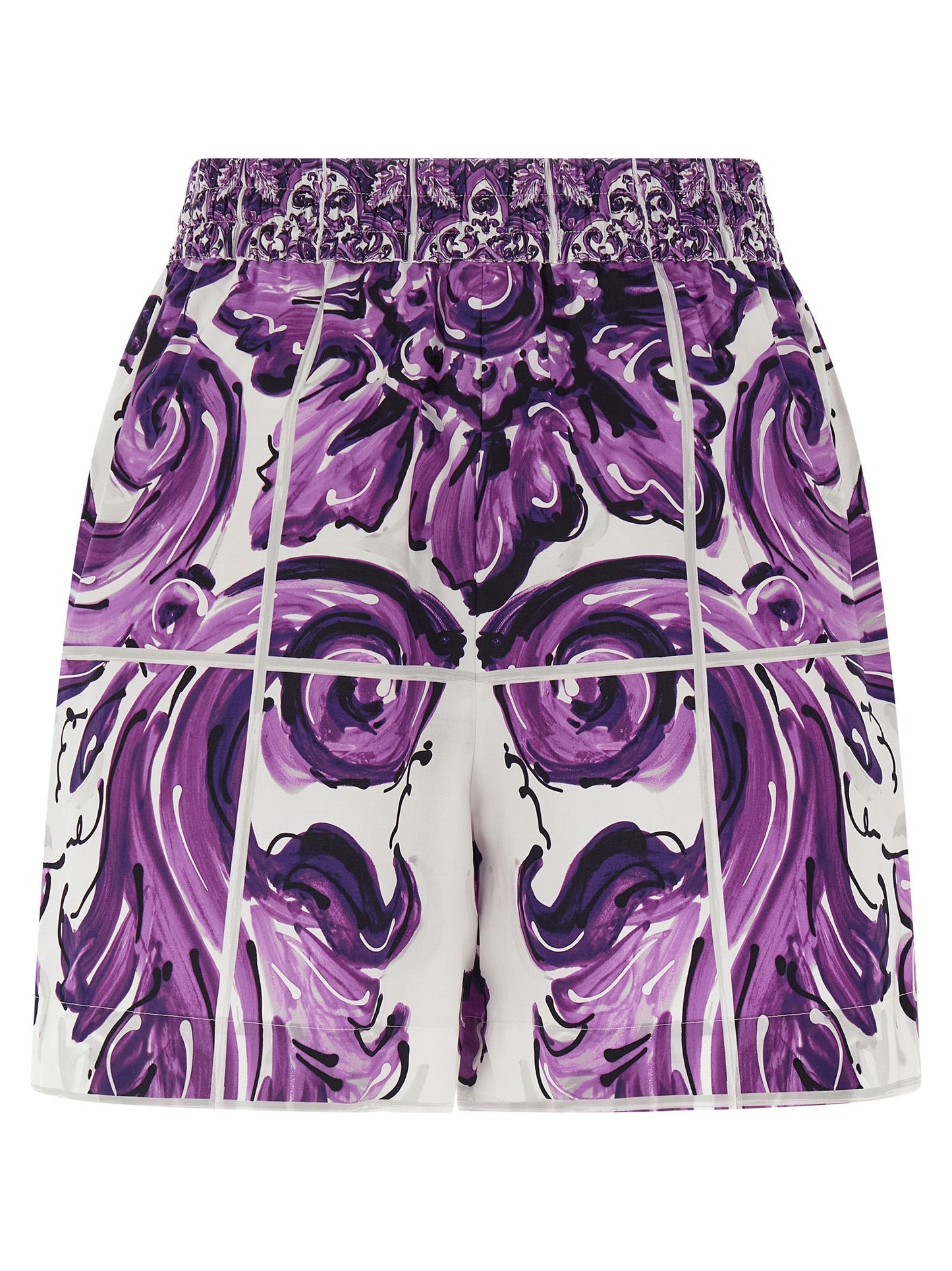 Maiolicaプリント、サイドポケット、調整可能なドローストリング付きの弾力性のあるウエストバンド付きのコットンポップリンショーツ。 ドルチェ&ガッバーナ 「Maiolica」プリントコットンショーツ サイズにぴったりです