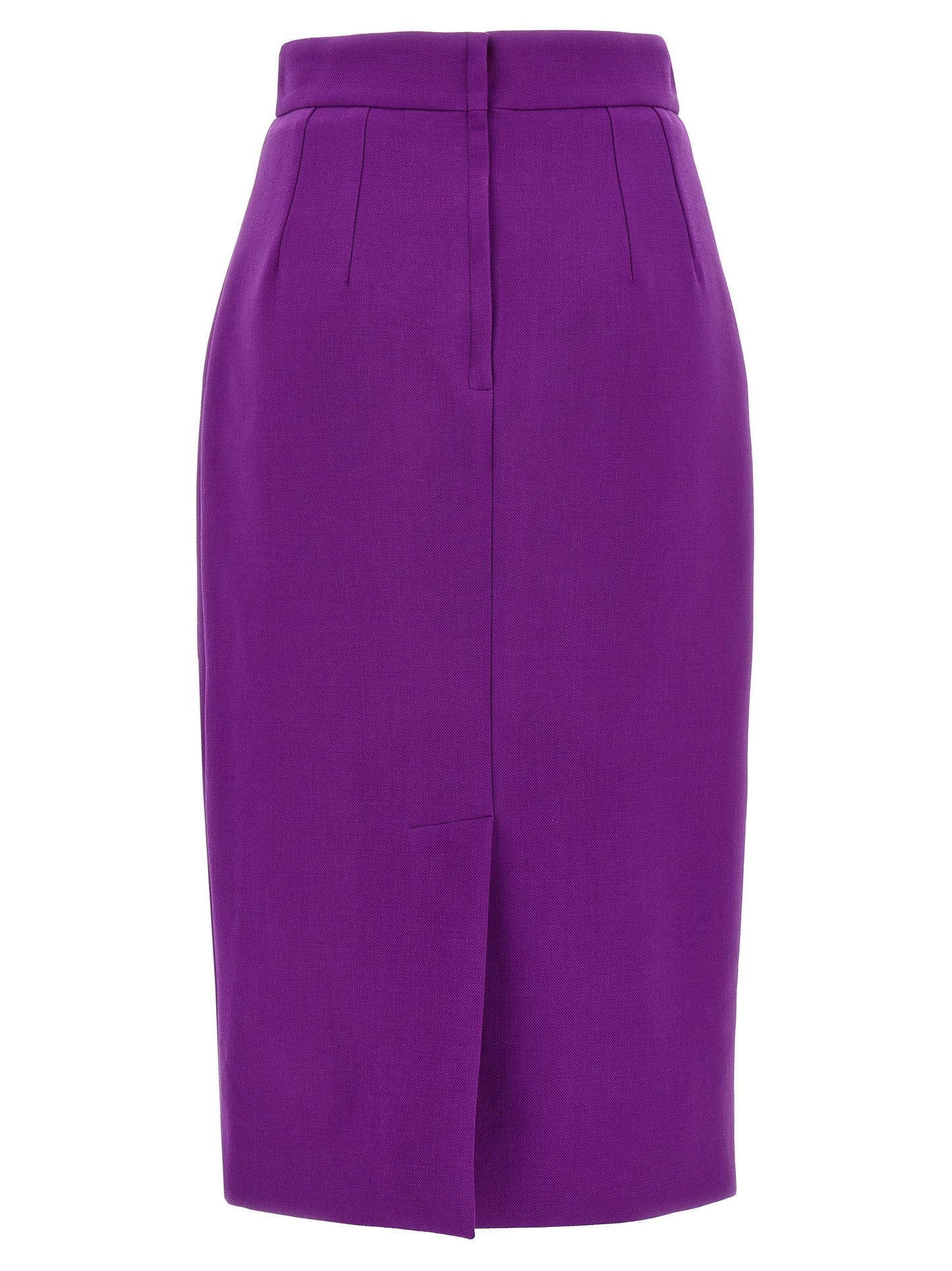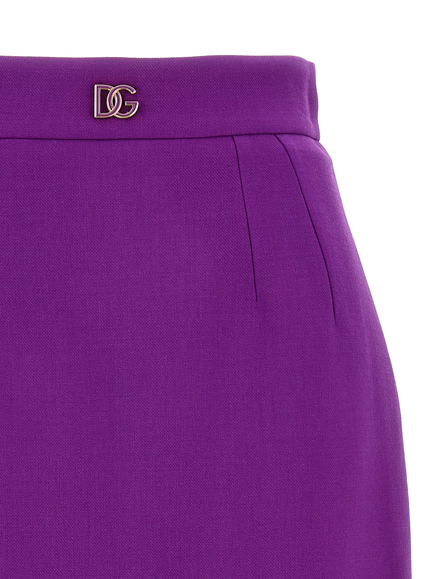 ダブルウールクレープのロングエットスカート、ピンチと金属のロゴが付いたシースドレス、ポケット、ジップクロージャー、バックスプリット、トーンオントーンストレッチシルクサテンライニング。 ドルチェ&ガッバーナ メタリックロゴスカート サイズにぴったりです