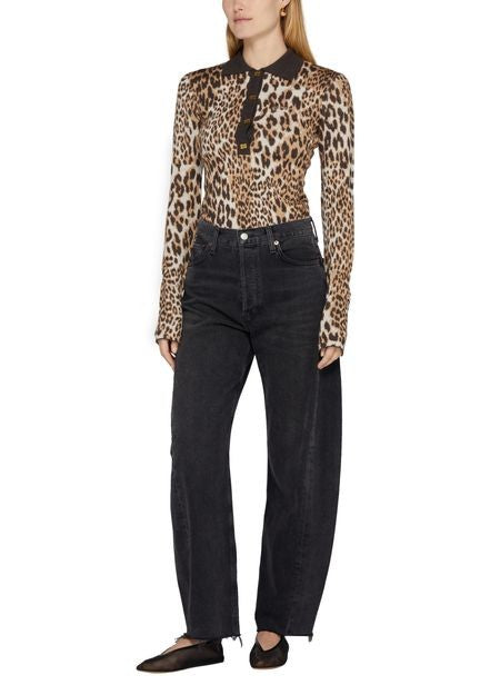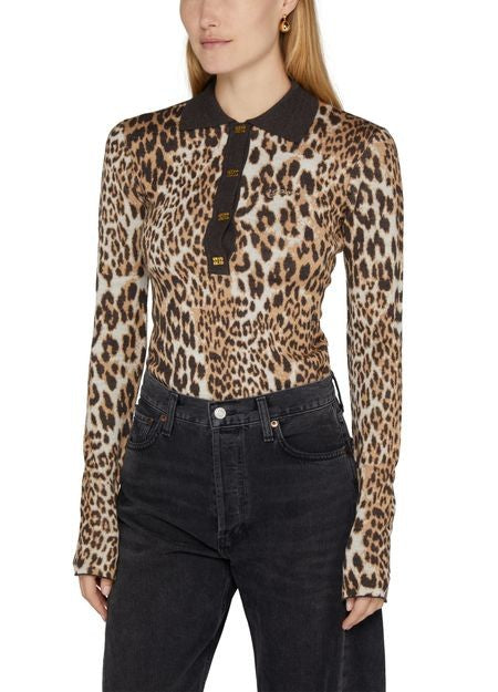 GANNI ファインメリノ製 レオパード ジャカード ポロ