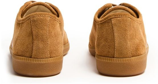 説明 : Suede, round toe, closed, visible stitching, laces and strap, logo on the side, logo on the tongue.