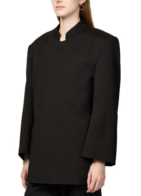 説明 : boxy fit, button fastening, long-sleeved, high neck.