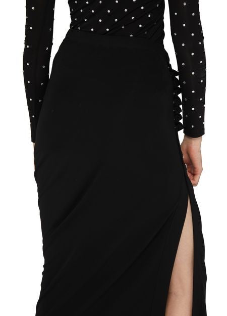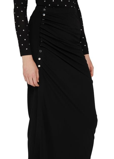 説明 : ラベルにロゴ, アップリケロゴ, スタッズディテール, ミディ, ストレートボタンスカート, 目に見えるステッチ, シルバー仕上げ, ゴム入りウエスト.