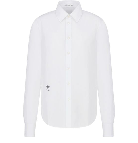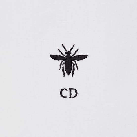 説明 : Embroidered hallmark bee and CD signature, front button closure, christian Dior Paris signature mother-of-pearl buttons, french cuffs, unlined.