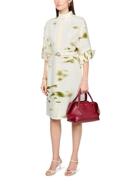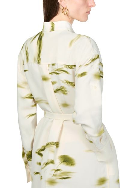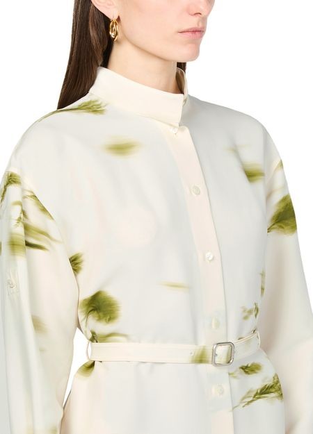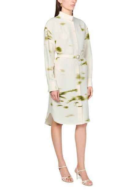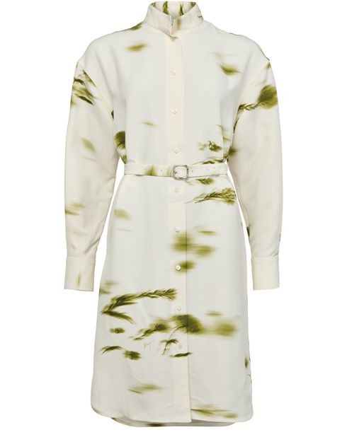 説明 : フロントボタン留め, 目に見えるステッチ, マンダリンカラー, 膝丈, ハイネック, ロングスリーブ, シャツドレス, ボタン付きカフス, プリント, 総柄.