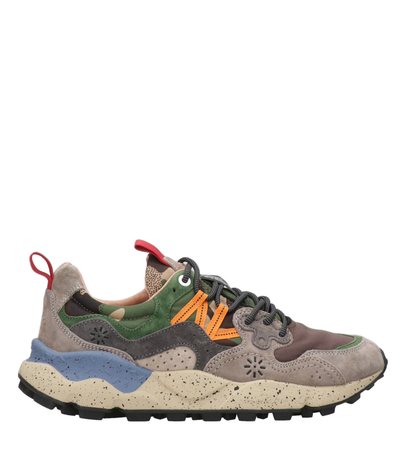 - スエードとテクニカルファブリック - ファブリックプルタブ付きロゴ付き舌 - レースアップ閉鎖 - 舌とかかとの象徴的なロゴ - バックヒールループ - リサイクルコルクインソール - ノッチ付きトレッドパターンのソール上のゴム