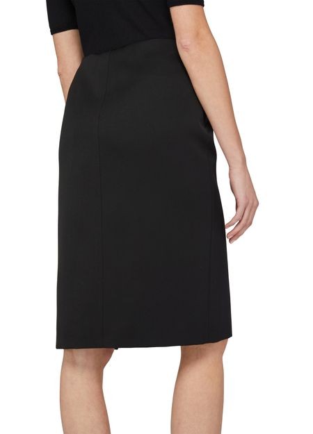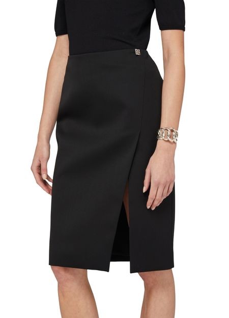 説明 : ボタン留め, 膝丈, ペンシルスカート, ラベルにロゴ, シルバー仕上げ, サイドスリット.