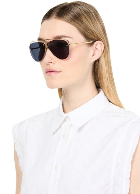 説明 : ゴールド仕上げ, ゴールドトーンメタルテンプル, アビエーターシェイプ, ティントレンズ.