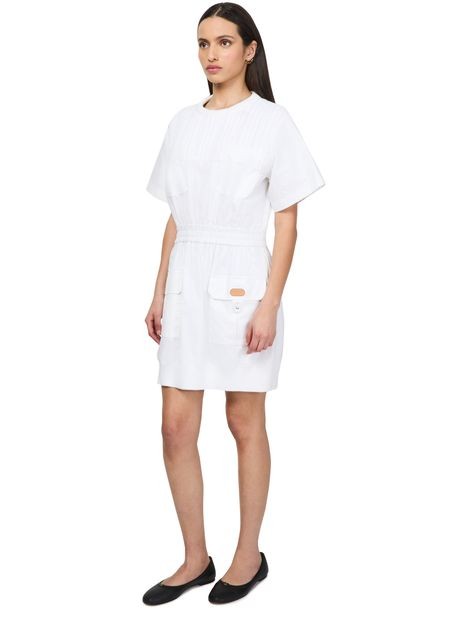 説明 : ユティリティスタイルウーブンインサートドレス.