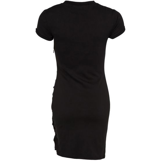 説明 : 目に見えるステッチ, ドレープディテール, 膝丈, クルーネック, ショートスリーブ.