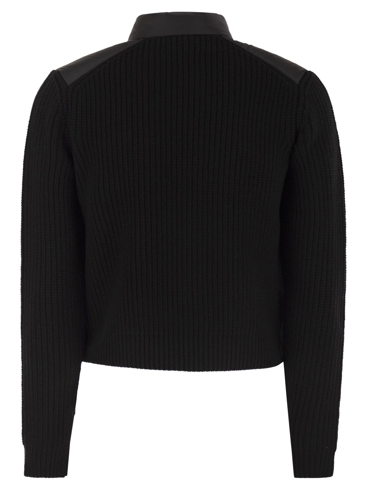 モンクラーはジップ付きのウールカーディガンをパッドします