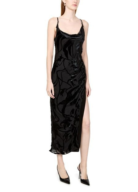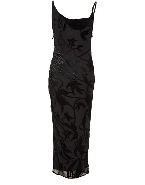 説明 : 総柄, サイドファスナー, ラウンドネック, スパゲッティストラップ/細いショルダーストラップ, ミディドレス, カクテル&イブニング, 目に見えるステッチ, フィットウエスト.