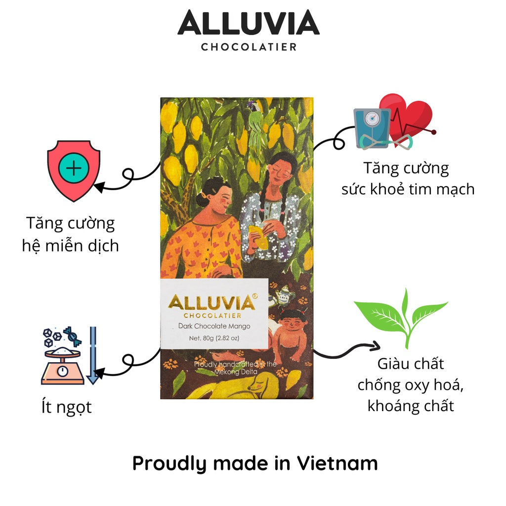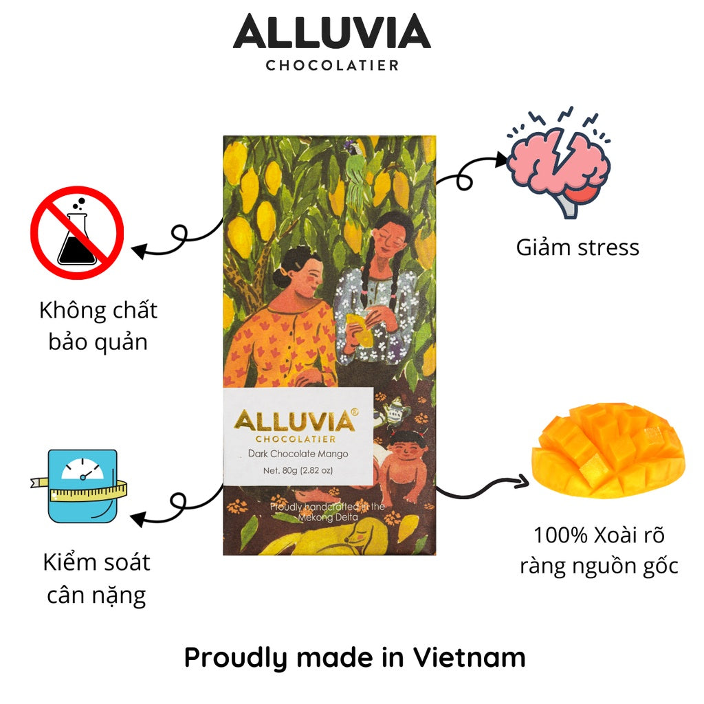 - Characteristics: Alluvia Mango chocolate has a light, sour and naturally sweet taste of mango