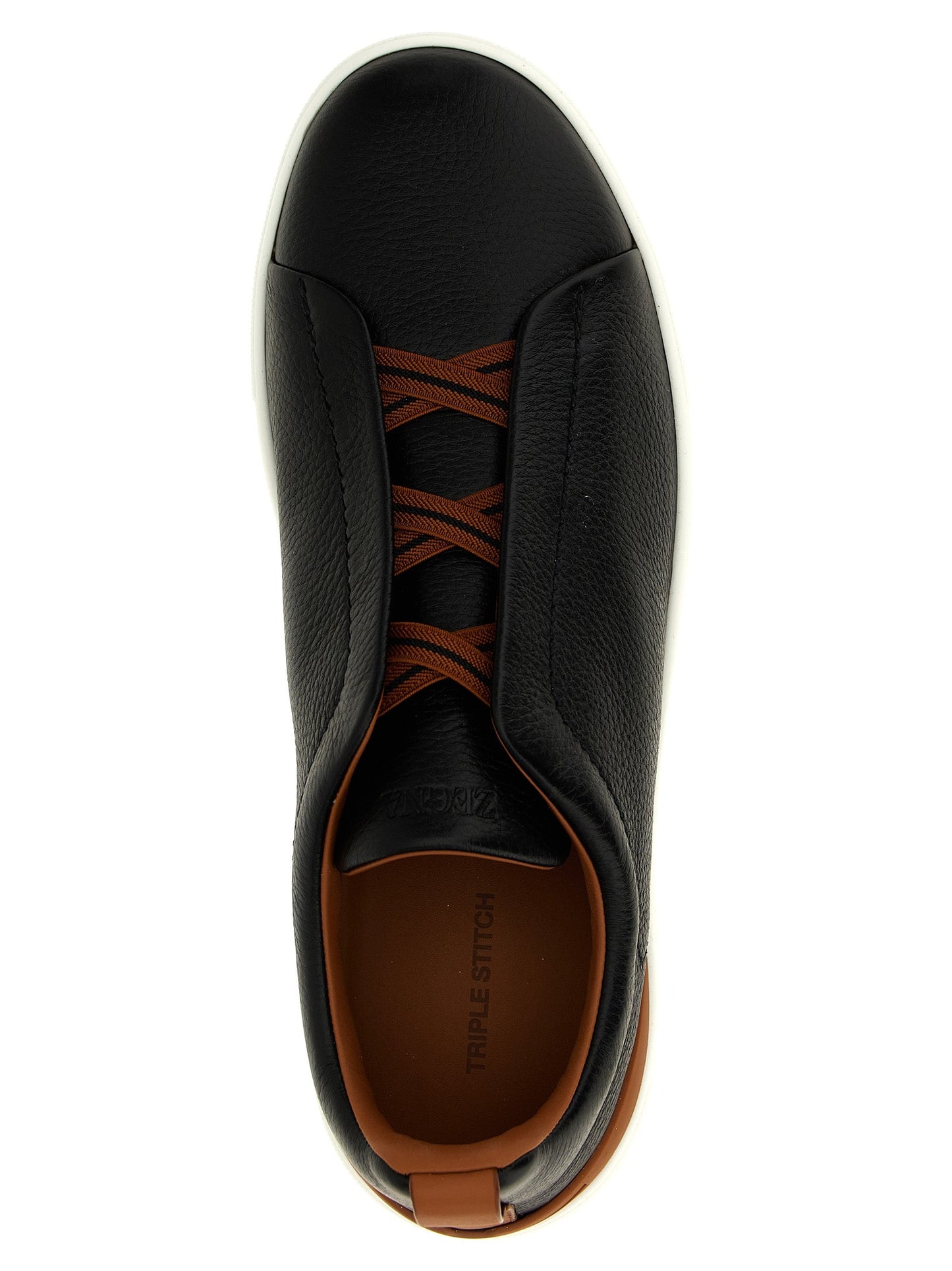 'Triple Stitch' hammered leather sneakers, slip-on model with elastic closure and rubber sole. ZEGNA 'Triple Stitch' sneakers UK MEN