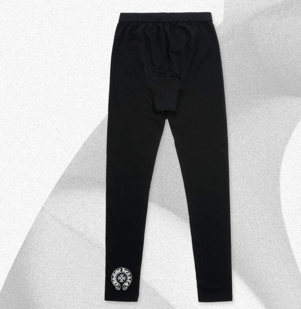 - BLACK COTTON LONG JOHNS WITH BLACK AND WHITE JACQUARD KNIT CHROME HEARTS ELASTIC WAISTBAND