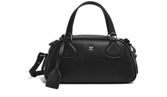 説明 : ファスナー開閉, シルバーフィニッシュ, ダブルハングル, 前面ロゴ, 銀文字ロゴ, 飾りステッチ, 手持ち, 肩掛け, ワイドストラップ.