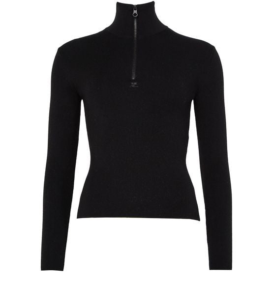 説明 : Ribbed, mockneck, long-sleeved, zipper closure.