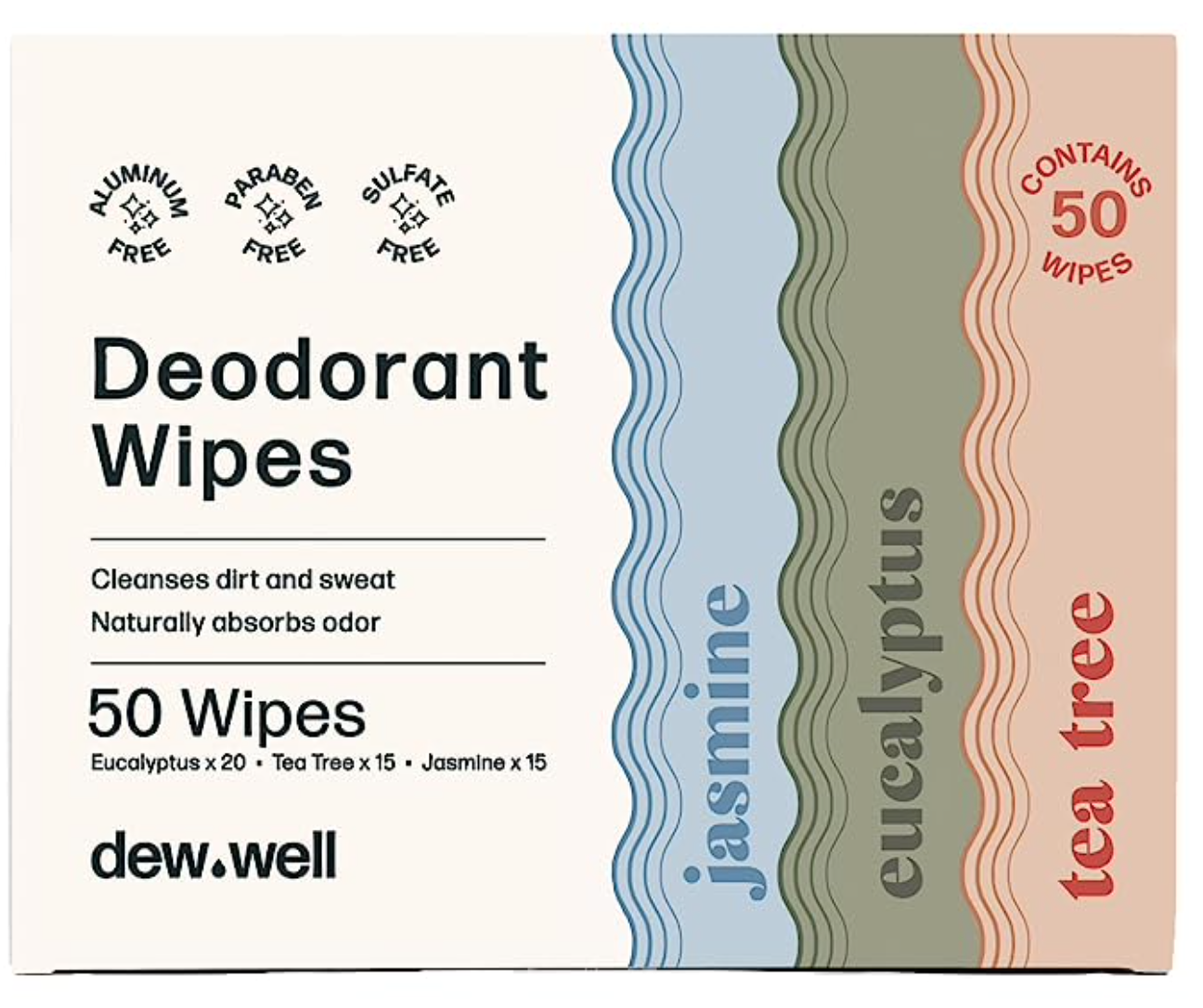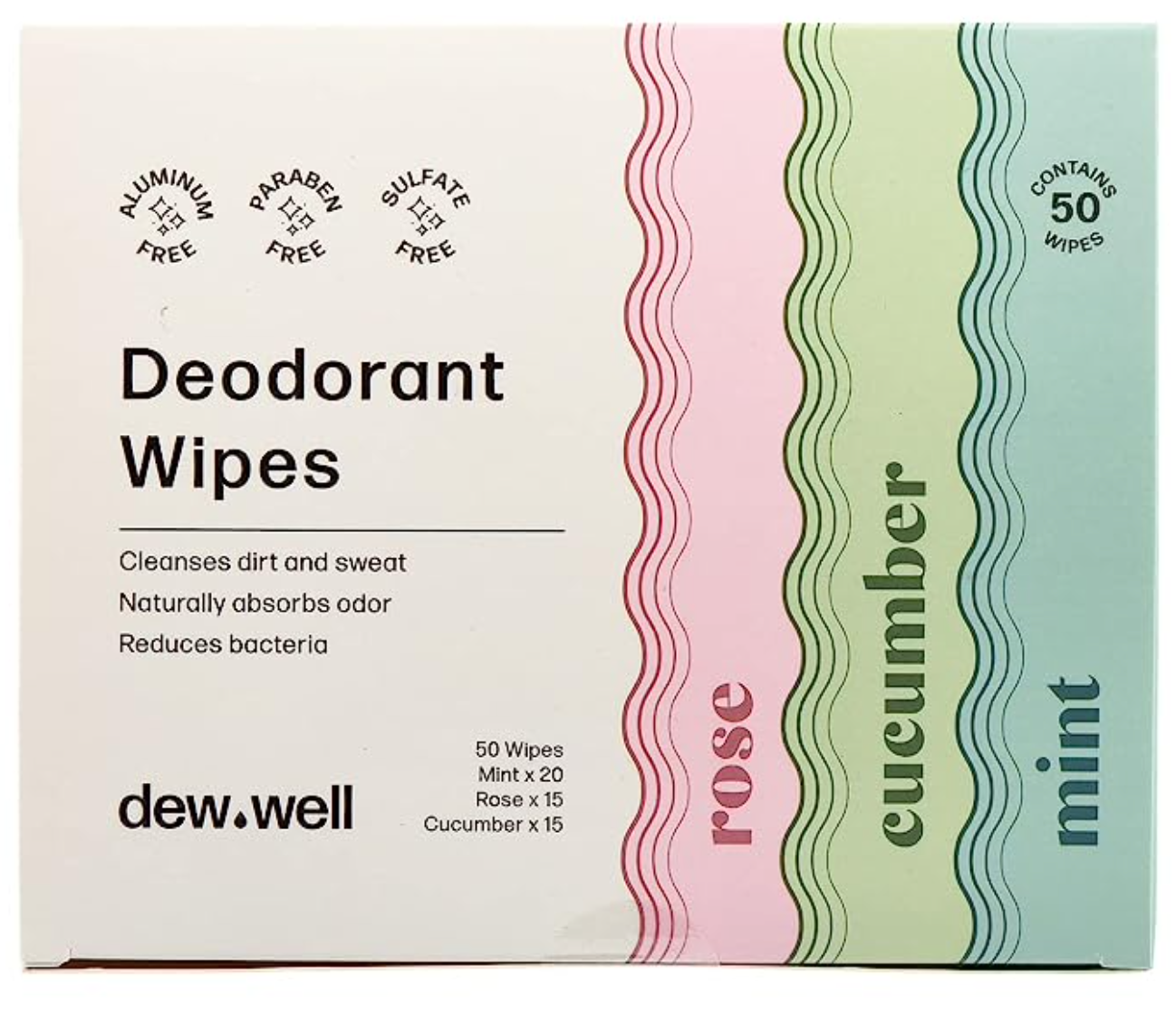 Dew Well - Refresh Deodorant Wipes - A Fresh Start When You’re On the Go - Aluminum, Paraben, and Sulfate Free - Cucumber Scent - 50 Individually Wrapped Wipes