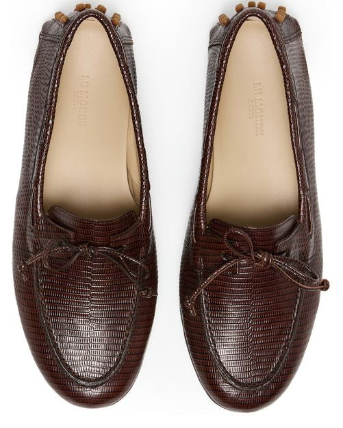 LE MONDE BERYL Driver calf snake effect leather moccasins