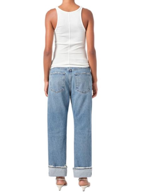 説明 : ファイブポケットスタイル, ボタン&コンシールファスナー開閉, 目に見えるステッチ, ベルトループ, アンクル丈, ストレートカット.