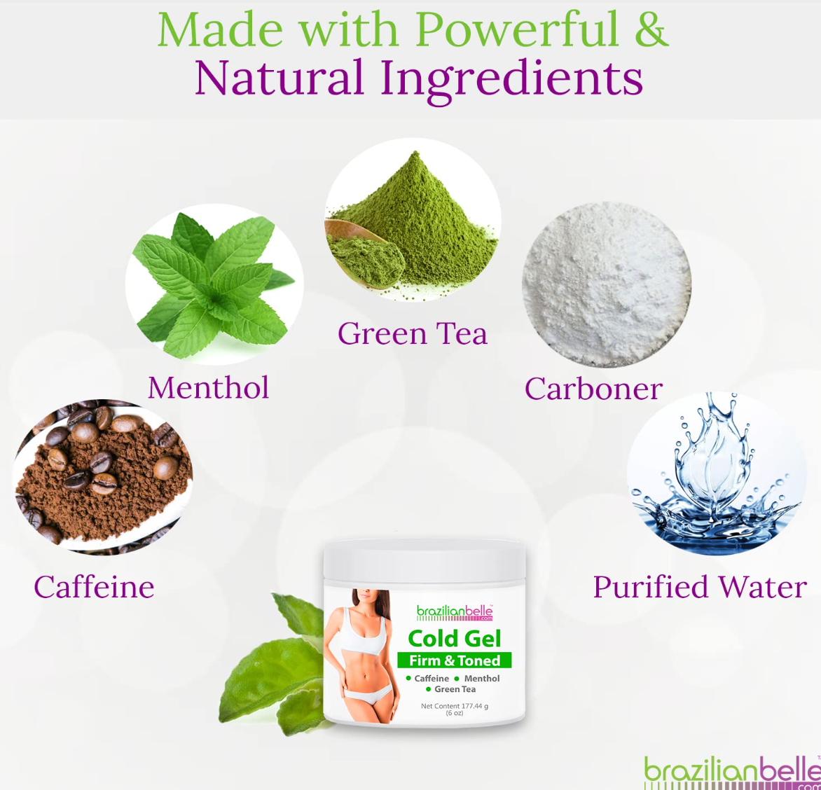 Brazilian Belle Cold Gel with Caffeine and Green Tea Extract - Improves Skin’s Texture, Hydrates, and Moisturizes - Cryo Gel (1 Jar)