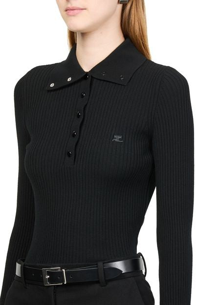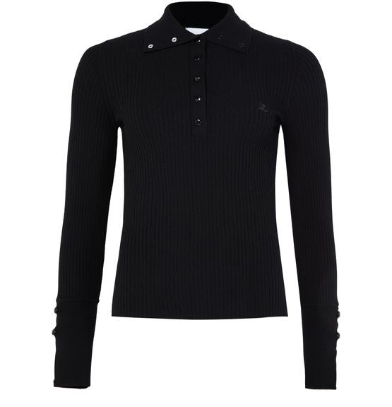 説明 : Ribbed, high-neck, cuffed sleeves, long-sleeved, button fastening.